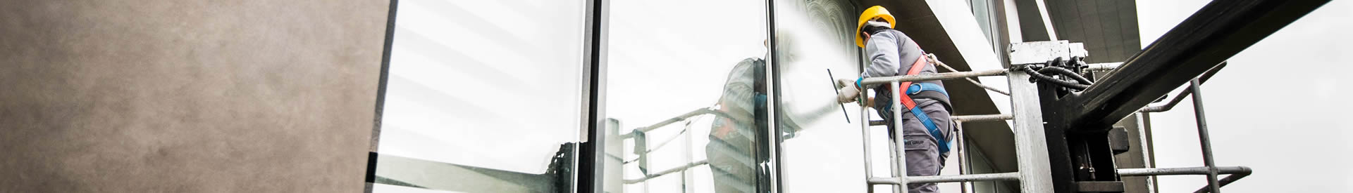 Yüksek binalarda uzman ekip ve ekipmanlarla cam temizliği.